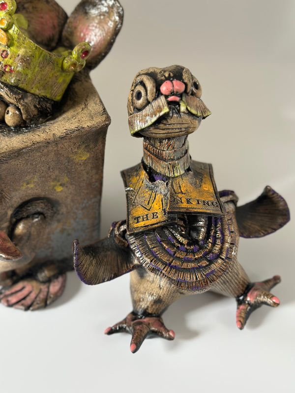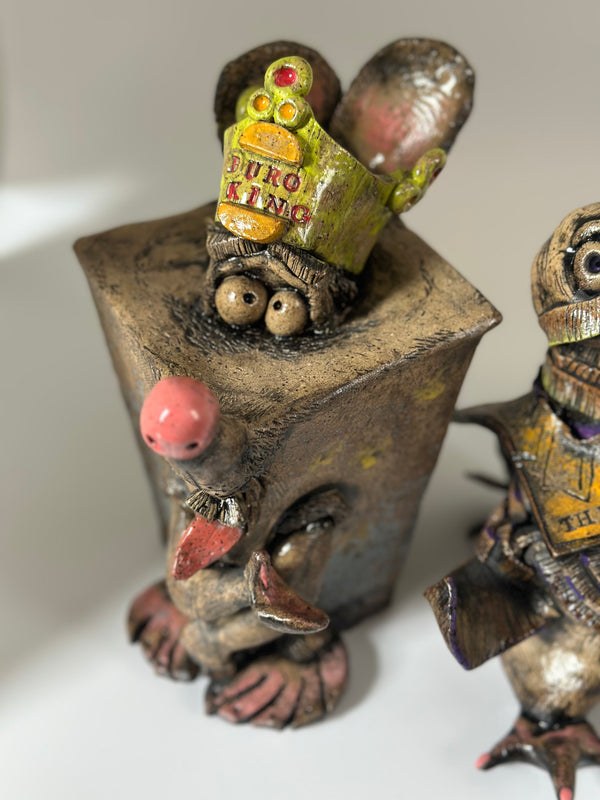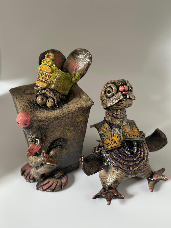A playful rivalry between the city’s most popular residents: a street rat called the BURO king and a pigeon called LYIN KING, each making their rightful claim to the throne. The collective showcases the vision of reclaiming discarded objects, reimagined as symbols of power and pride.